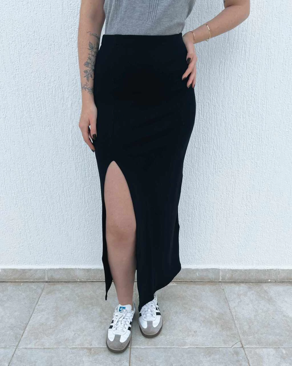Saia confeccionada em malha canelada encorpada com muita elasticidade, que proporciona conforto e ajuste ao corpo. O cós com elástico embutido oferece praticidade, modelando a peça no seu corpo. Pode ser usada no dia a dia ou ocasiões mais arrumadas, combinando com diferentes estilos de blusas, croppeds ou camisas.